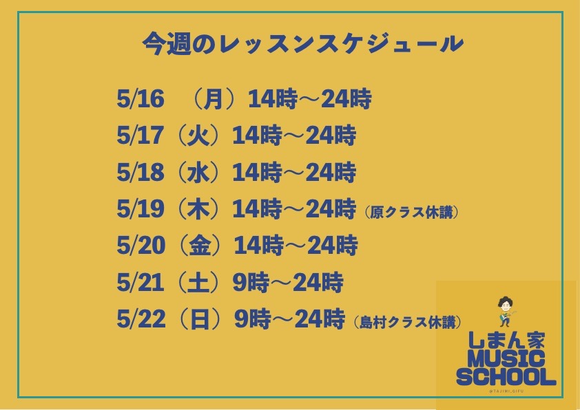 今週のレッスンスケジュールは画像をご参照ください😊