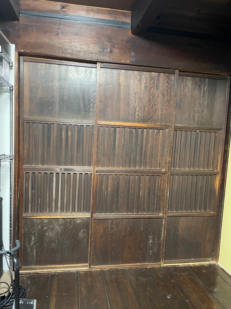 もともと家にあった戸をリサイズして再利用、古民家感があっていい雰囲気です😄